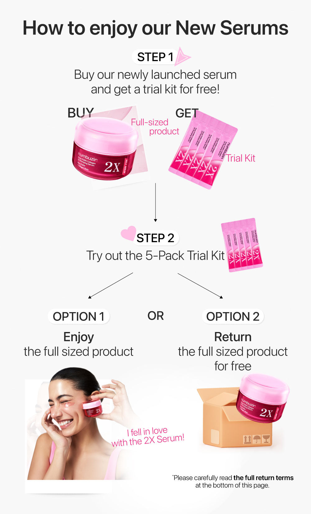 - Try the mini size first and decide whether to return the full-size product.