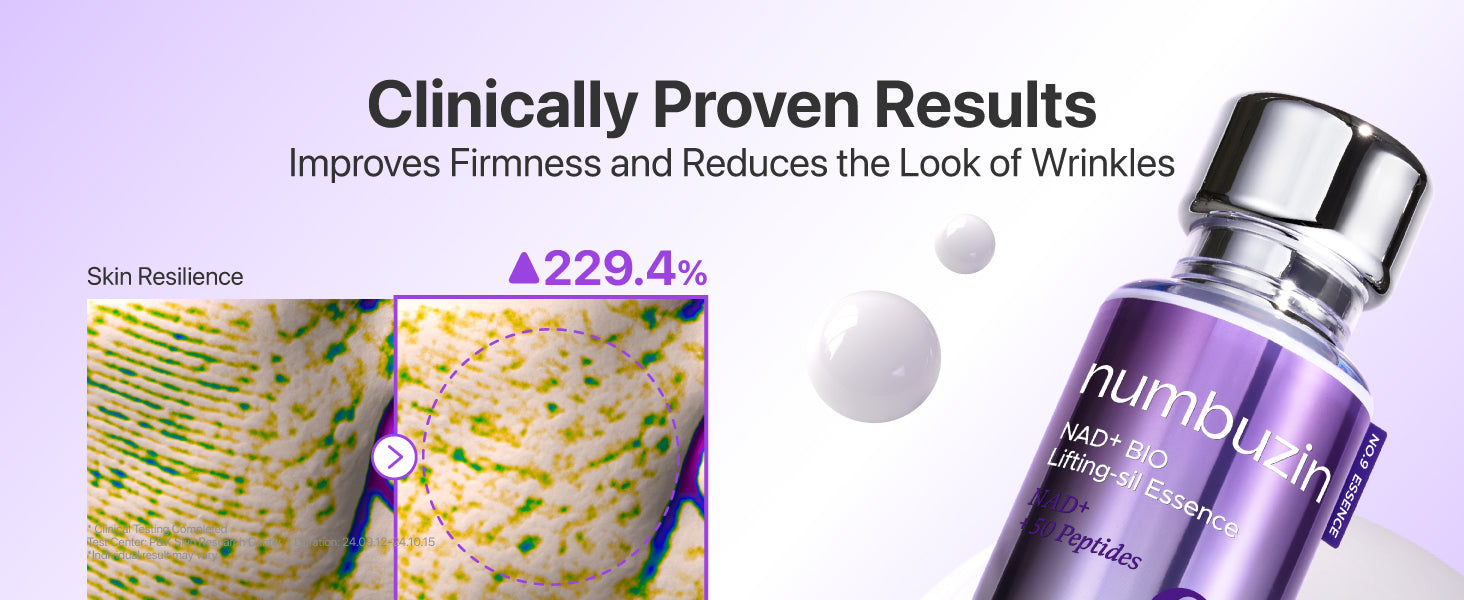 [WRINKLE REDUCING ESSENCE] Thread-like elastic essence that lifts, firms, and improves the appearance of fine lines and wrinkles for rejuvenated, youthful-looking skin.